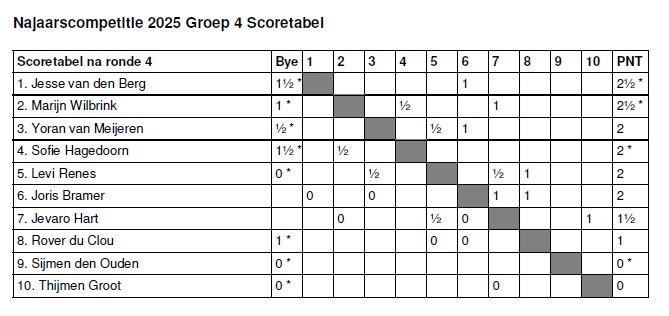 Team 1 bestond uit Jevaro, Ravie (nieuw), Jordy en Berend (nieuw). Het team won 2 van de 3 wedstrijden en speelde er 1`gelijk, waardoor overtuigend de winst in poule 4B behaald werd. Topscoorders waren Jevaro en Berend met de maximale score van 3 uit 3.