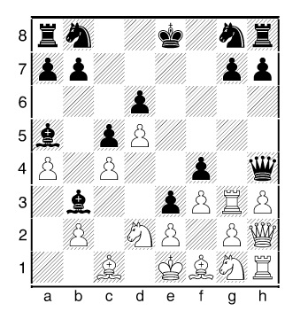 Zwart had niet in de gaten wat er aan zat te komen: 21.f5 exf5 22.Dxg6! Achteraf vertelde zwart dat hij had gedacht: “Wat doe je nou, offer je je dame?” Hij probeerde nog 22. …Dg5, maar na 23.Pf6+ was het pleit beslecht: