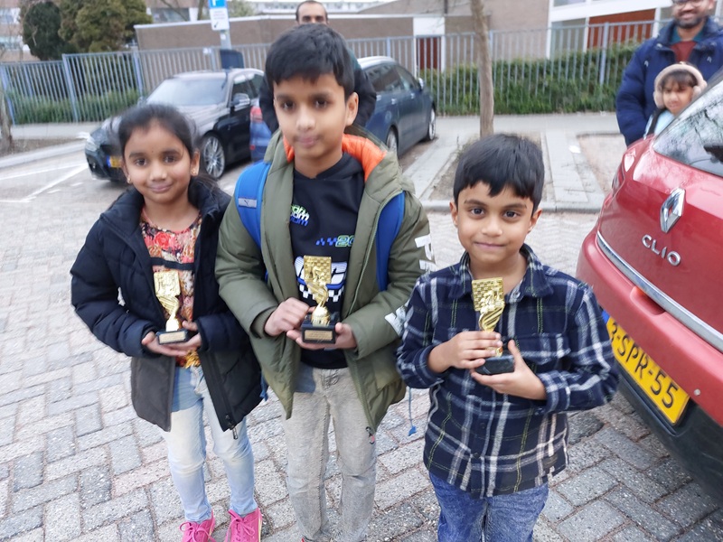 Aan het Grand Prix toernooi van Barendrecht/IJsselmonde deden 4 Messemaker-jeugdleden mee: Teja in groep 8, Lasya en Hanvika in groep 19, Riyansh in groep 20. Drie van hen wisten bij de eerste vier te eindigen en daarmee een prijs in de wacht te slepen: Teja werd groepswinnaar, Lasya en Riyansh eindigden allebei als tweede. Van harte gefeliciteerd! Alle uitslagen van het toernooi zijn te vinden op de RSB-website.