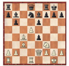 Vandaag met wei speelden we ofwel “Sicilian Defense: Staunton-Cochrane Variation” of anders gezegd “English Opening: Fianchetto, Ultra-Symmetrical Line”. Een licht voordelige stelling voor wit max. 0.7 op zet 17: