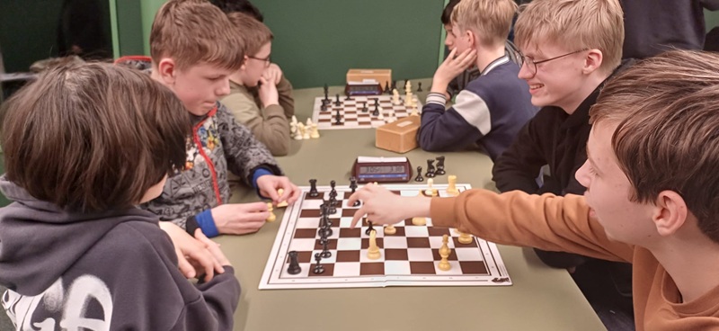 Woensdag 18 maart was verkiezingsdag en was de grote zaal van het BDC ingericht als stemlokaal. Daardoor moest de Messemaker-schaakjeugd uitwijken naar een ander deel van het BDC/ Maar dat kon de pret zeker niet drukken, vooral omdat er voor Groep 3 een alternatief programma was bedacht: Hands & Brains. Onder de bezielende leiding van meester Raoul speelde de jeugd hierbij in tweetallen tegen andere tweetallen, op één bord, waarbij één speler de zetten moest uitvoeren (“Hands”) en de ander moest zeggen met welk stuk er gezet moest worden (“Brains”). Het winnende tweetal was Gideon met Lucas.