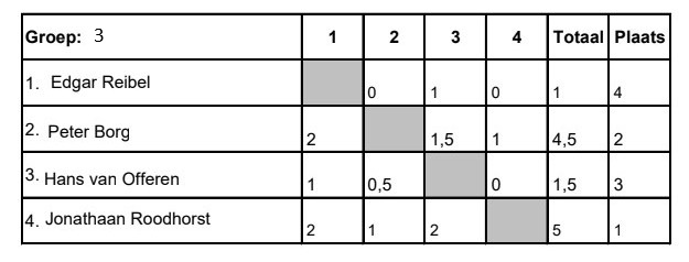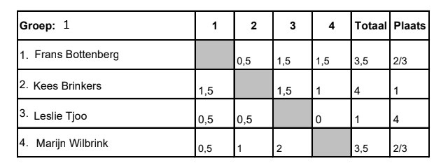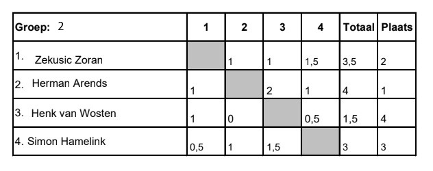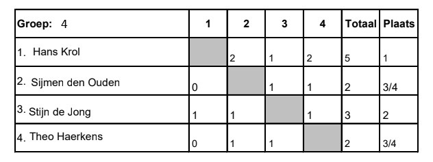 Er werd dubbelrondig gespeeld, dus 6 rondes, en na ronde 6 werden de winnaars bekend: