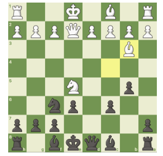 Ik begon de partij met de zwarte stukken, mijn tegenstander begon met 1.e4, ik reageerde met 1…c6, de Caro Kann. De partij ging verder met 2.Pf3 d5 3Pc3 dxe4 4.Pxe4 Pf6. Een bekende stelling, ik heb dit al 2 keer gespeeld in de interne competitie tegen Albert Segers en Derek Zuurmond dit seizoen. Beide partijen gingen overigens verloren, maar ik was vastberaden om niet dezelfde fouten te maken. De partij ging verder: 5.De2 Pxe4 6.Dxe4 Pd7 7.Lc4 Pf6 8.Pe5 e6 9.De2 b5. Precies zoals eerder dit seizoen tegen zowel Albert als Derek. De zet 9…b5 zet een mooie val op, als wit besluit te pakken op c6 dan volgt 10…Dc7 11.Lxb5 a6 12.La4 Ld en na bijv. 13.Df3 Tc8 is het onmogelijk om stukverlies voor wit te voorkomen. Mijn tegenstander was helaas goed genoeg om hier niet voor te vallen en besloot 10.Lb3 te spelen. Wederom dezelfde stelling.