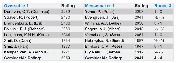 Daarmee redt Sjoerd een half punt voor Messemaker en hiermee eindigt deze titanenstrijd op een gelijkspel (4-4). Ik denk dat beide ploegen hiermee nu wel kunnen leven.
