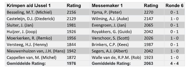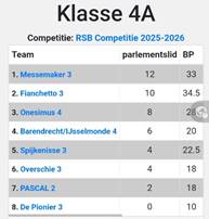 De kampioenskansen van ons eerste RSB-team zijn flink gekrompen in Krimpen. Nu ook de uitslag van RSR Ivoren Toren binnen is, kunnen we beter zeggen dat de hoop van Auke is “verschrompeld” tot een nietig ashoopje. Er is de laatste weken wat zand in de motor geraakt van onze RSB teams. Het tweede team had een paar weken geleden ook al een totale OFF-day tegen Pascal waardoor ze geheel onnodig de koppositie verloren in klasse 2B. Alleen ons derde team weet zich aan deze malaise te onttrekken en ligt – met nog slechts één ronde te gaan – fier op ramkoers voor het kampioenschap: zij hebben alle zes wedstrijden gewonnen!